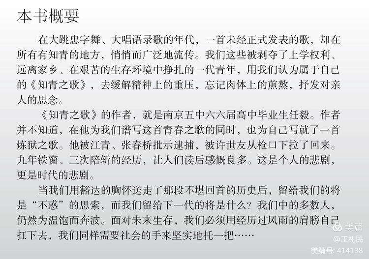贺《知青之歌始末》出版。