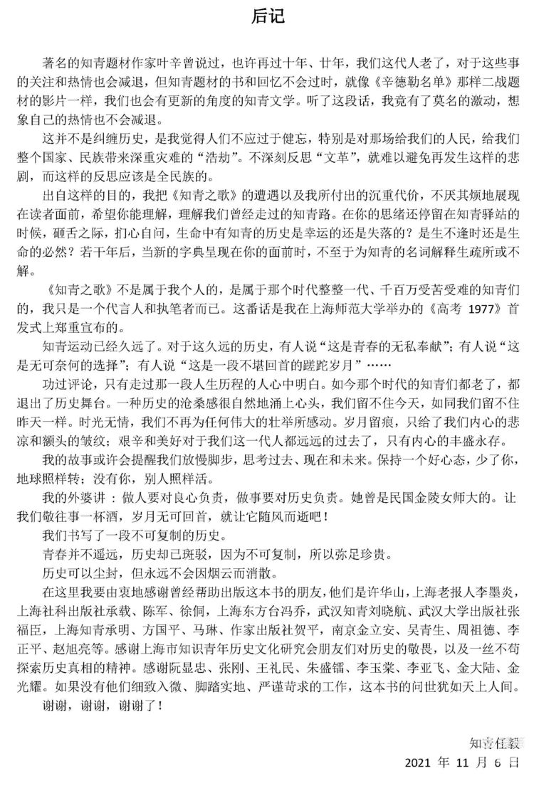 新编《知青之歌始末》,由任毅先生再次提供书中所有资料照片,重新核对书中文字。编委会对原样书逐页扫描转为电子文档,反复核对校对,在今日出版社的努力下,《知青之歌始末》散着油墨香,于2021年12月21日来到上海知青研究会,不日将面世与君分享。