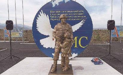 2021年11月23日,纳卡维和行动一周年之际,俄维和兵营里竖立一座纪念碑,一个全套战斗装具的士兵肩上背着步枪,左手拥抱着一个小女孩,后者正在向他献花,士兵原型就取自于参加纳卡维和的真实军人。 常立军