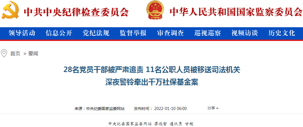 中央纪委国家监委网站1月10日信息显示,中央纪委国家监委公布了湖南省一起千万社保基金案的始末,28名党员干部被严肃追责, 11名公职人员被移送司法机关。令人称奇的是,这样一则大案告破背后竟源于当地银行的深夜警铃...