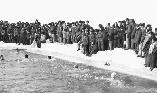 寒冷,是“猫冬”的理由,也是“闹冬”的动力。 孩子们滚雪球、打雪仗、堆雪人,还有抽冰猴、“斗鸡”…… 跑跑跳跳,汗流浃背,越冷越欢腾。勇敢、热血、昂扬,是欢腾的另一种注脚。 1980年冬天,佳木斯的气温降到零下二三十摄氏度。有人一连几天在冰面上凿啊挖啊, 谁也没想到,他们竟挖出个泳池打算游泳!“燃”这个字,不仅仅属于年轻人。 一群平均年龄接近60岁的“老男孩”,重新组建了一支叫“北京1979”的冰球队。 这个特别的名字背后,是一个在40多年前戛然而止的梦想。