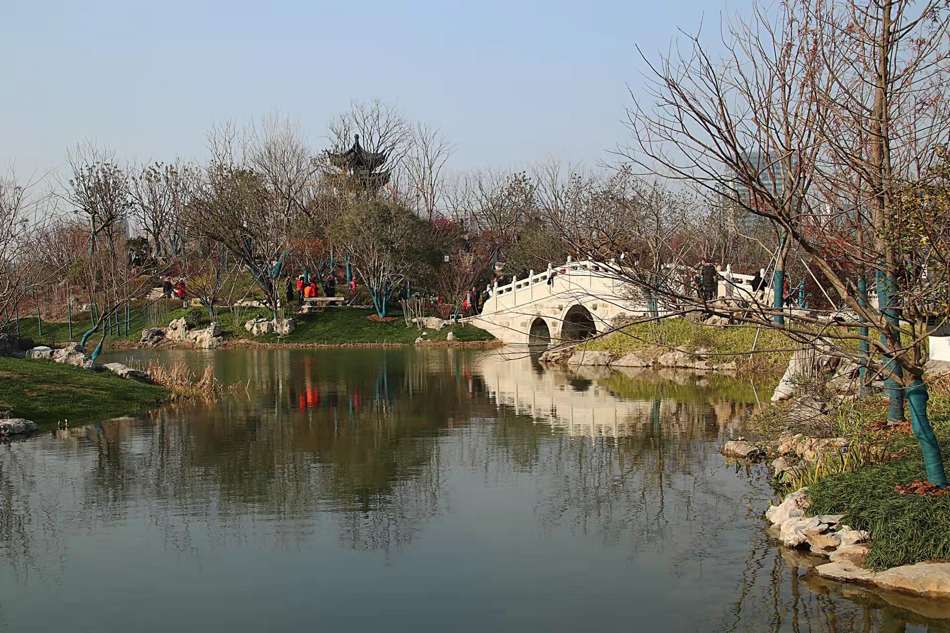 透过充满江南园林风格的亭台,可以望见远处现代化的高楼大厦,古风与现代风交相辉映,焕发出这个城市勃勃的生机。