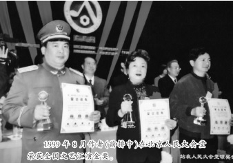 1999年庆祝新中国成立50周年之际,我带领铁路局朝鲜族艺术团代表吉林省到北京参加全国文艺汇演,荣获金奖(奖杯在吉林省陈列),阿妈妮听说后,高兴得跳起舞来……