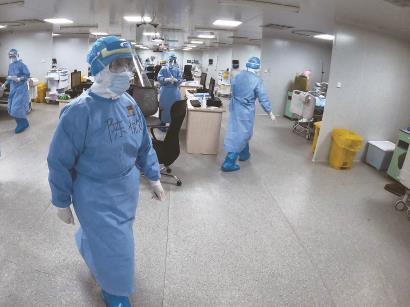 军队医护战士在武汉火神山医院重症ICU里紧张工作