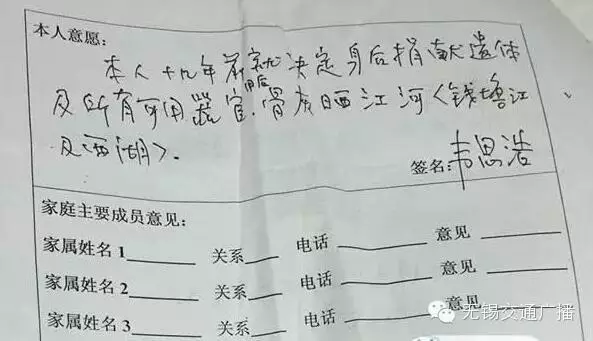 是那张签了名的遗体捐赠志愿表
