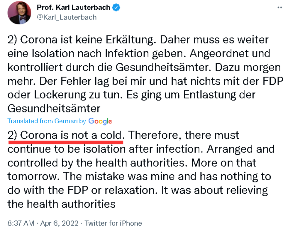 劳特巴赫甚至还在自己的社交账号上公开道歉,称自己“犯了一个错误”。他说,虽然取消阳性病例的强制隔离措施可以减轻德国各地卫生部门的负担,但此举却发出了一个“错误和有害”的信号,因为“新冠不是感冒”。