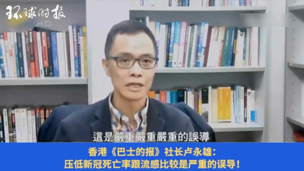 近日,香港《巴士的报》社长卢永雄在一段接受采访的视频中公开表示,本轮新冠疫情中香港的死亡数很高,绝非一些人所宣称的“流感级别”,因为眼下香港一两天的死亡人数,就已经达到了香港一年流感的死亡人数。他由此认为,不能学西方“躺平”,而是应当继续坚持采取有效的防疫措施应对疫情,保护好民众的生命。