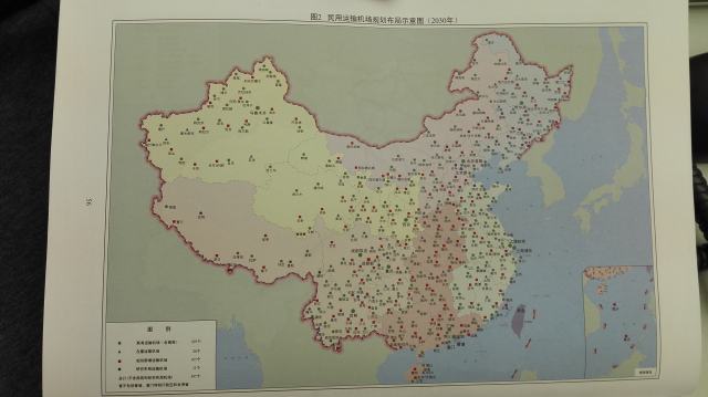 在纲要草案的第55页和56页,分别是“中长期高速铁路网规划示意图”和“民用运输机场规划布局示意图”。