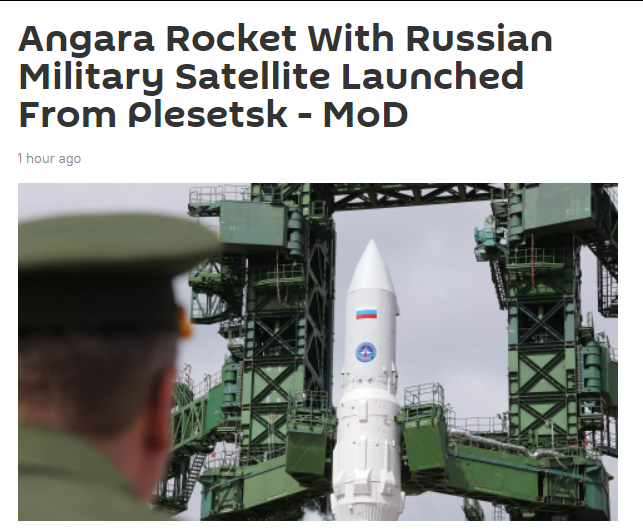 俄宣布成功发射“安加拉-1.2”火箭 将军用卫星送入目标轨道