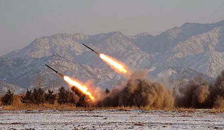 本月3日,朝鲜用300毫米口径多管火箭炮朝鲜半岛东部海域发射了6枚炮弹。