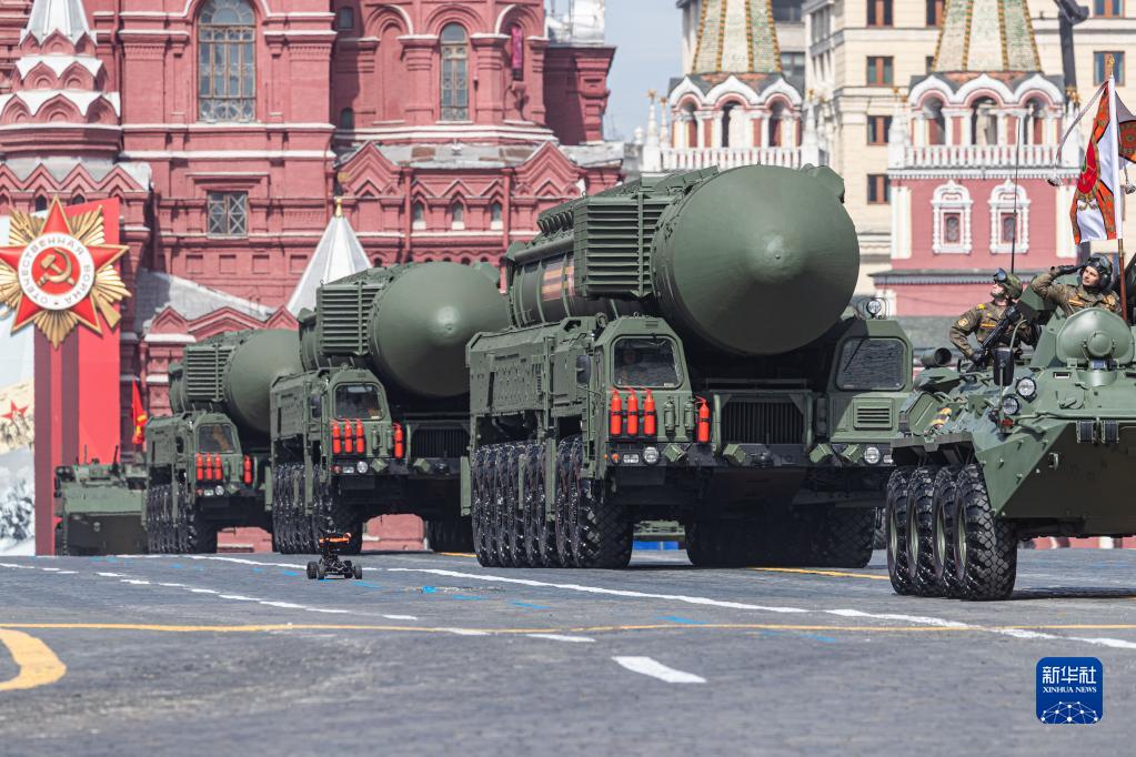 5月7日,在俄罗斯首都莫斯科,“亚尔斯”导弹系统编队驶过红场。