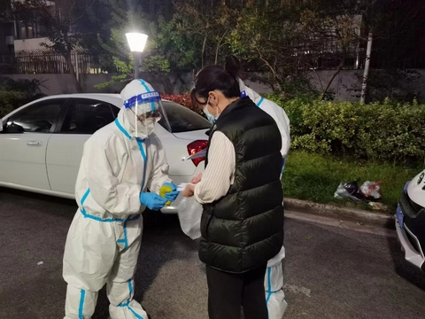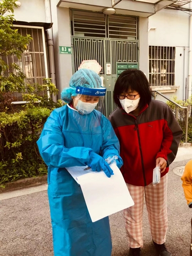 ⑶小区从3月18、19日连续两天全员核算筛查开始,就进入了紧张的抗疫战斗中。由维持核酸检测秩序,帮助无手机或不会手机操作申请核酸检测二维码的老者能顺利完成核酸检测,到协助居委各楼道张贴通知告示;配合保安门岗值班查验出入证及核酸检测阴性证明;发放抗原试剂盒及回收查验结果;积极参加快递物质保障组政府物质的卸货及发放;配合居委工作人员将政府和居委对高龄及独居老人的关爱送上门;积极配合医生认真做好每次的核酸检测工作……
