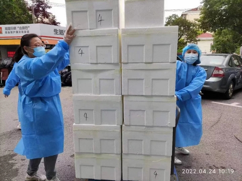 ⑸记得3月21曰核酸筛查,因为下着雨,志愿者披着雨衣协助居民进行检测比晴天时困难会大的多,过了午饭时间,居民齐阿姨送了两大袋热騰腾的肉包,先给志愿者们垫垫饥饿,还有的送来些点心饼干方便面等……居民的爱就是那么接地气。我们小区也出了些阳楼,对于这些阳楼阳户,居委是在志愿者服务完所有楼栋归家后,由他们亲自上楼服务,最危险的和最困难的留给他们自己来解决。他们长时间昼夜奋战在社区,将家中的孩子和事都托付给自己的父母或亲人,而自己献身给社区广大居民们。在这样舍小家为大家,彼此守护互相关爱的氛围中正能量蓬勃生长,每次的活儿都是秒杀地抢,手慢是没有机会的。