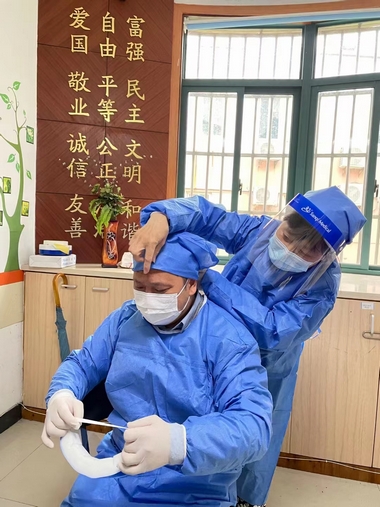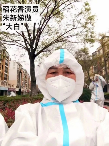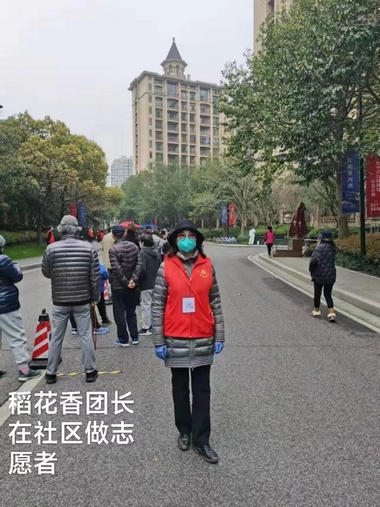 2、值得学习的志愿者精神:朱新娣是东方知青稻花香艺术团的时装走秀演员(中共党员)。曾经是黑龙江建设兵团一名知青。在这次疫情中,她在第一时间到社区做志愿者,一直奋战在第一线 !她做得最多的就是穿上“大白衣”在核酸检测现场维持秩序。因为小区人多,服务时间一般在8个小时左右,有时甚至要10多个小时,不论白天,还在深夜,她始终坚持到检测结束。每当她脱下“大白衣”时,浑身上下好像从水里捞上来一样。加上长时间的戴口罩,摘下后,脸上、耳朵上口罩的勒痕又红又痛;穿上“大白衣”还不敢喝水,怕上厕所。一上厕所,就要浪费一件“大白衣”……