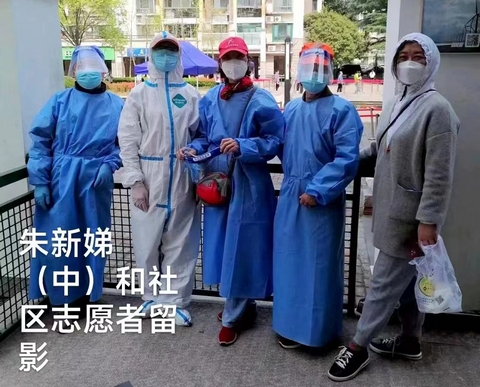 4、心理疏导医师朱晓平:东方知青文化促进会稻花香艺术团团长朱晓平(中共党员)和队员丁蕾(中共党员),同住一个小区,在小区封控后,第一时间担任小区志愿者,为小区抗疫防控出力。不论是小区做核酸、发抗原、派送保供物质,都可以看到她们俩的身影。朱晓平女士是一位资深的、具有高级职称的医务工作者,在疫情期间,她主动承担心理咨询工作。为小区居民作心理疏导,缓解居民的心理压力。受到小区居民的赞扬。