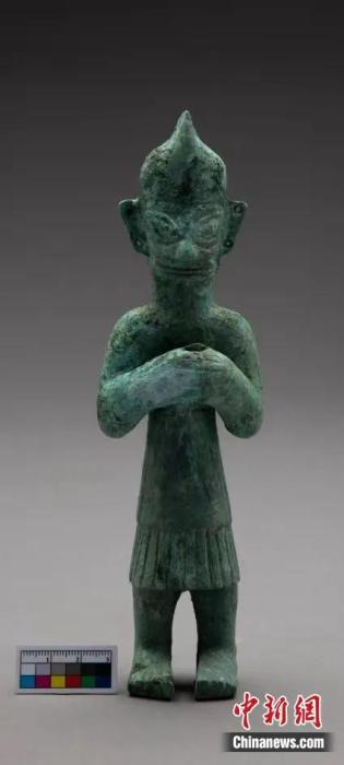 资料图:三星堆出土青铜扭头跪坐人像。 四川省文物考古研究院供图