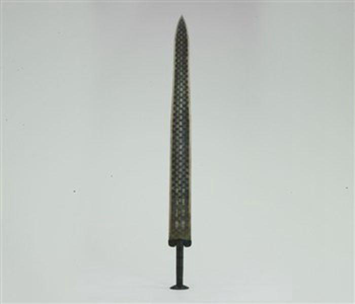 越王勾践剑:1965年12月出土于湖北江陵望山一号楚墓,造型高贵、典雅。这把剑在出土时插在漆木剑鞘里,出鞘时仍然寒光闪闪,耀人眼目。