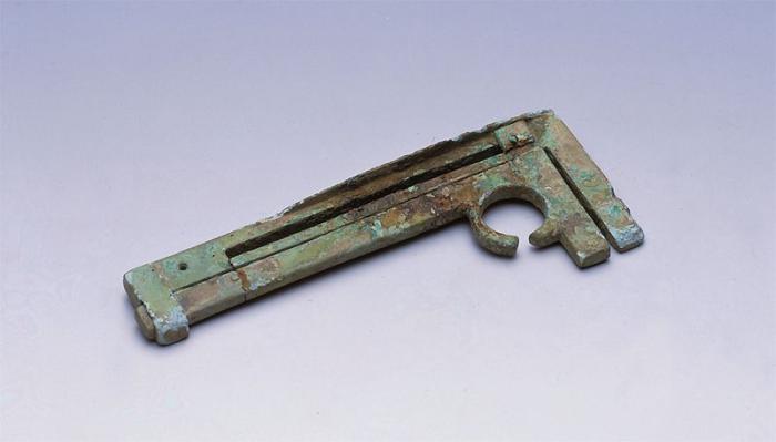 铜卡尺:这件铜卡尺像极了现在的游标卡尺。据扬州博物馆网站介绍,1992年,它出土于邗江甘泉镇姚湾村汉墓。