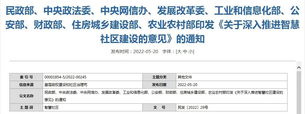 九部门印发《关于深入推进智慧社区建设的意见》!