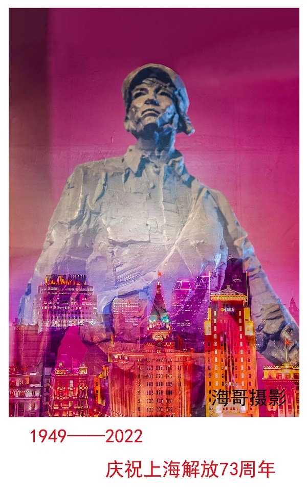 刘宏海: 今天是上海解放73周年纪念日,分享两幅我的摄影作品(多重曝光),以示纪念。在这个特殊的日子里,特别缅怀为民族独立和上海解放英勇牺牲的先烈,崇敬为新中国的诞生前赴后继的前辈们,更确信上海一定能战胜奥密克戎病毒,走向新的胜利!