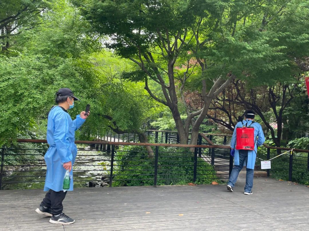 我看到工人们在对地面、围栏消毒。我问:没有人出入,空关了2个月,为什么要消毒?