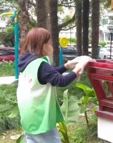 今天下午,我们小区志愿者自发组织了一次义务劳动。对小区“风吟亭”周围的环境进行了整洁。清除了草地上的落叶、洗擦了所有健身器材、并对风吟亭里里外外,进行消杀和清洗,使“风吟亭”周边环境有了明显改观。参加这次义务劳动的有10个志愿者,还有一位志愿者的10岁女儿也参加了这次义务劳动。