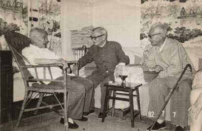 1982年7月7日下午,朱光潜(左)、茅以升(中)、宗白华三位老学者在朱光潜家会面谈心