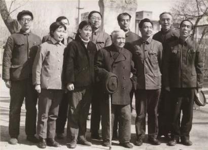 1982年3月,朱光潜(前排左3)与北大美学教研室老师合影,作者 为前排左1