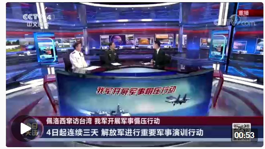 中国人民解放军将于北京时间8月4日12时至7日12时在台岛周边海空域进行重要军事演训行动,并组织实弹射击。