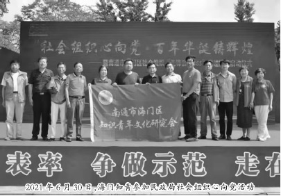 海门市知识青年文化研究会自成立以来,在研究知青历史文化,开展丰富多彩的各项活动,收集,保存,整理、展示这段历史作为知青文化研究会的首要任务。在社科联的关心和支持下,以“不忘初心,牢记使命”为主题,开展系列活动。2020年6月,成立了中共海门市知识青年党支部。我作为知青文化研究会会长,组织知青学习习近平的系列讲话,发挥知青正能量,服务社会,做到老有所为,老有所乐!在改革开放40周年和知识青年上山下乡50周年、建国70周年、建党100周年的庆典活动中,我组织知青以积极进取的思想,歌颂祖国的伟大,伟大的中国共产党系列重大活动海门电视台均进行了报道。组织知青志愿者发挥一技之长,开展金融、法律宣传、环境保护治理等社会服务,为社会文明,环境保护,提供知青力所能及的志愿者服务,获得社会各界的好评。