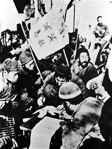 抗日战争时期,在减租减息工作中,农民同地主算账。