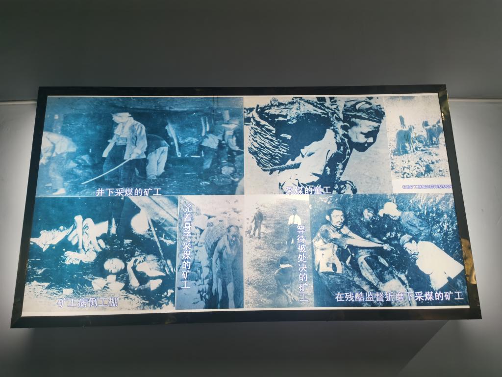 资料记载,1943年一处矿井有大量瓦斯渗出,侵略者硬逼着工人下井,不久瓦斯发生爆炸,烈火浓烟从井口向外喷,可他们却丧心病狂要把井口封死。愤怒的工人一次次向井口冲去,又一次次被刺刀逼回井内,近百名矿工被活活烧死。