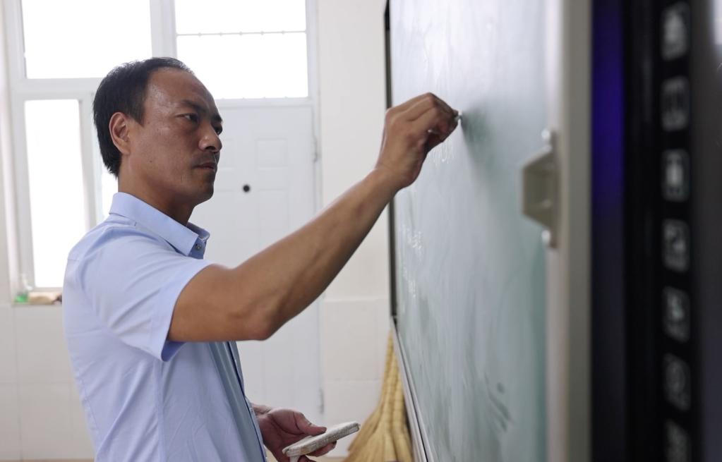 9月7日,杨金陆在给6年级学生上数学课。新华社记者杨帆 摄