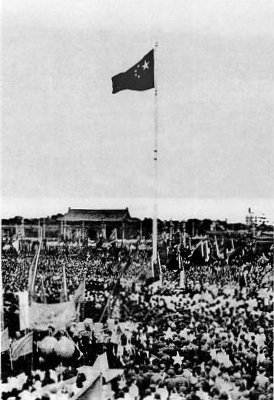 10月1日,在天安门广场举行开国大典,鲜艳的五星红旗冉冉升起,从此光耀四方。