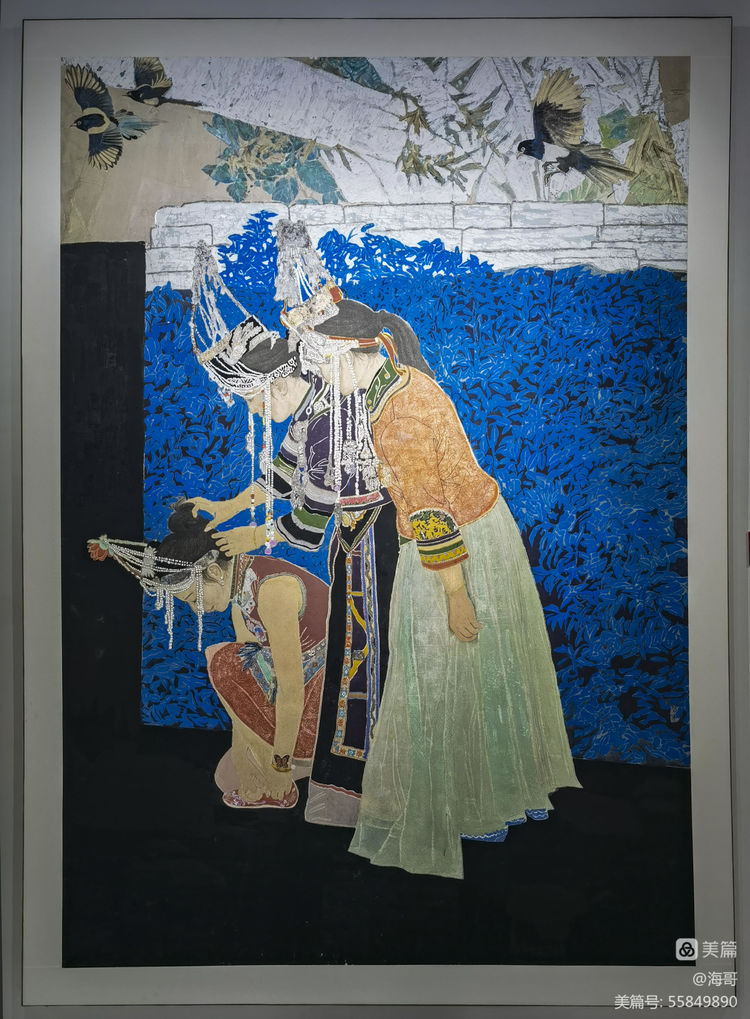 展览需要预约,但人不多,到了门口当场预约即可。偌大的四层仓库布置得满满的,第一印象确实眼前一亮,大尺幅比比皆是,动归就是2米左右的巨幅大画,说实话,没有专业水准是绝不敢画的。画作门类也比较齐全,国画、版画、油画、漆画、水彩画、农民画、综合材料画,应有尽有,艺术表现确实也与此匹配,非常专业,看得我是流连忘返,看了一下午夜不忍离开。这是一场美术盛宴,饕鬄大餐啊!