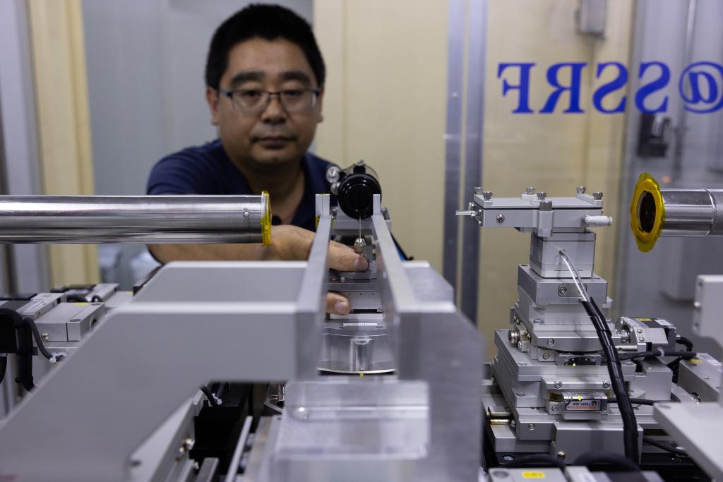 上海光源研究员张祥志在调试线站实验装备(9月6日摄)。新华社记者 金立旺摄