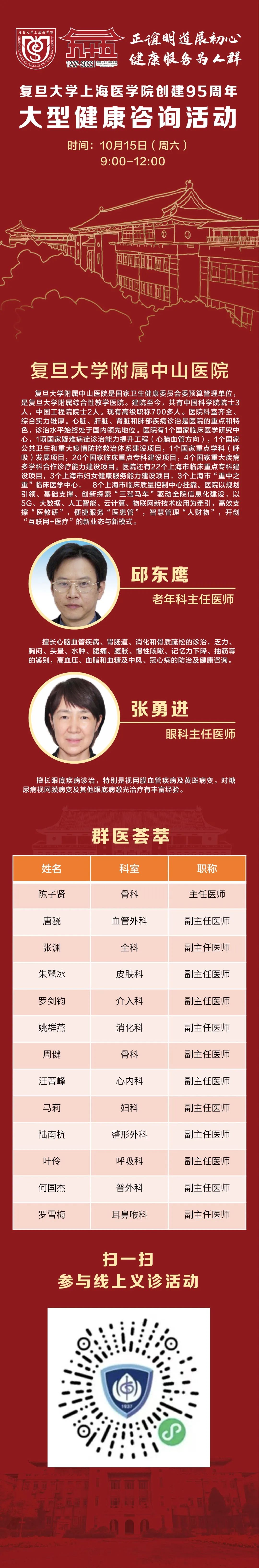 36位学科带头人,近600位医师!复旦上医创建95周年大型义诊活动来了!