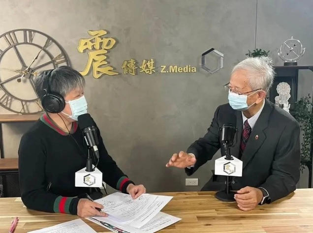 李远哲(右)在接受采访。
