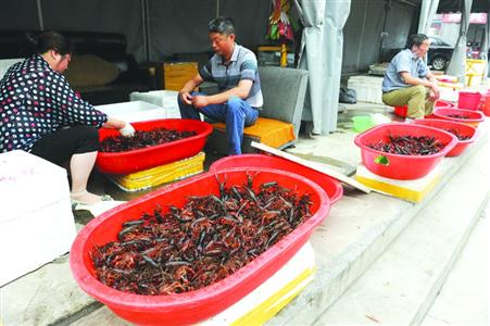 而在美食街任何一家店面问价,他们几乎异口同声地告诉你,小龙虾消费价60元一斤。前年是40元一斤,去年是50元一斤,今年再涨10元。记者在一些店家的摊位前了解小龙虾供应情况,发现上市的小龙虾大概在0.5两大小。见记者感觉小龙虾太小,一位店老板坦言,从湖南供货,大点一两左右的小龙虾批发价要45元左右一斤,零售价则要高达90至100元/斤,一般市民消费不起,所以他们进的小龙虾一般在0.3至0.5两之间,这样好卖。