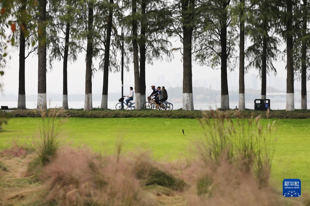 11月5日,市民在湖北武汉东湖风景区骑行。新华社记者 姚琪琳 摄