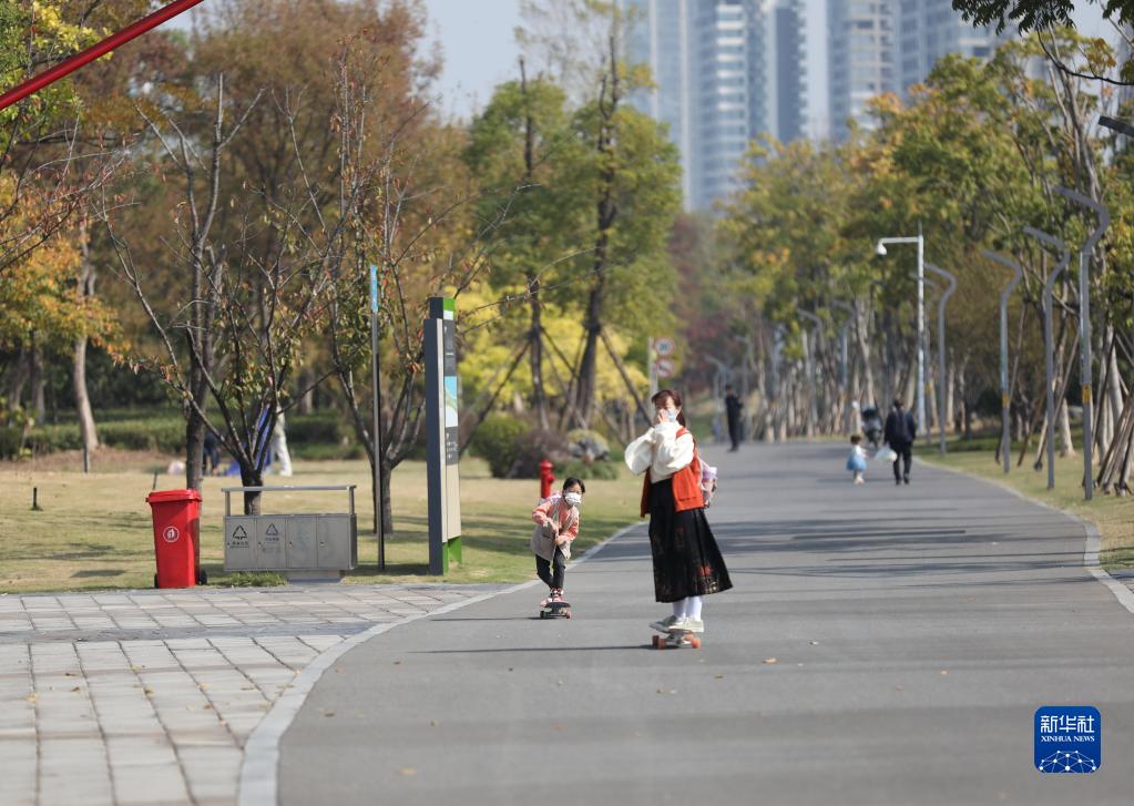 11月7日,市民在湖北武汉青山江滩玩滑板。新华社记者 姚琪琳 摄