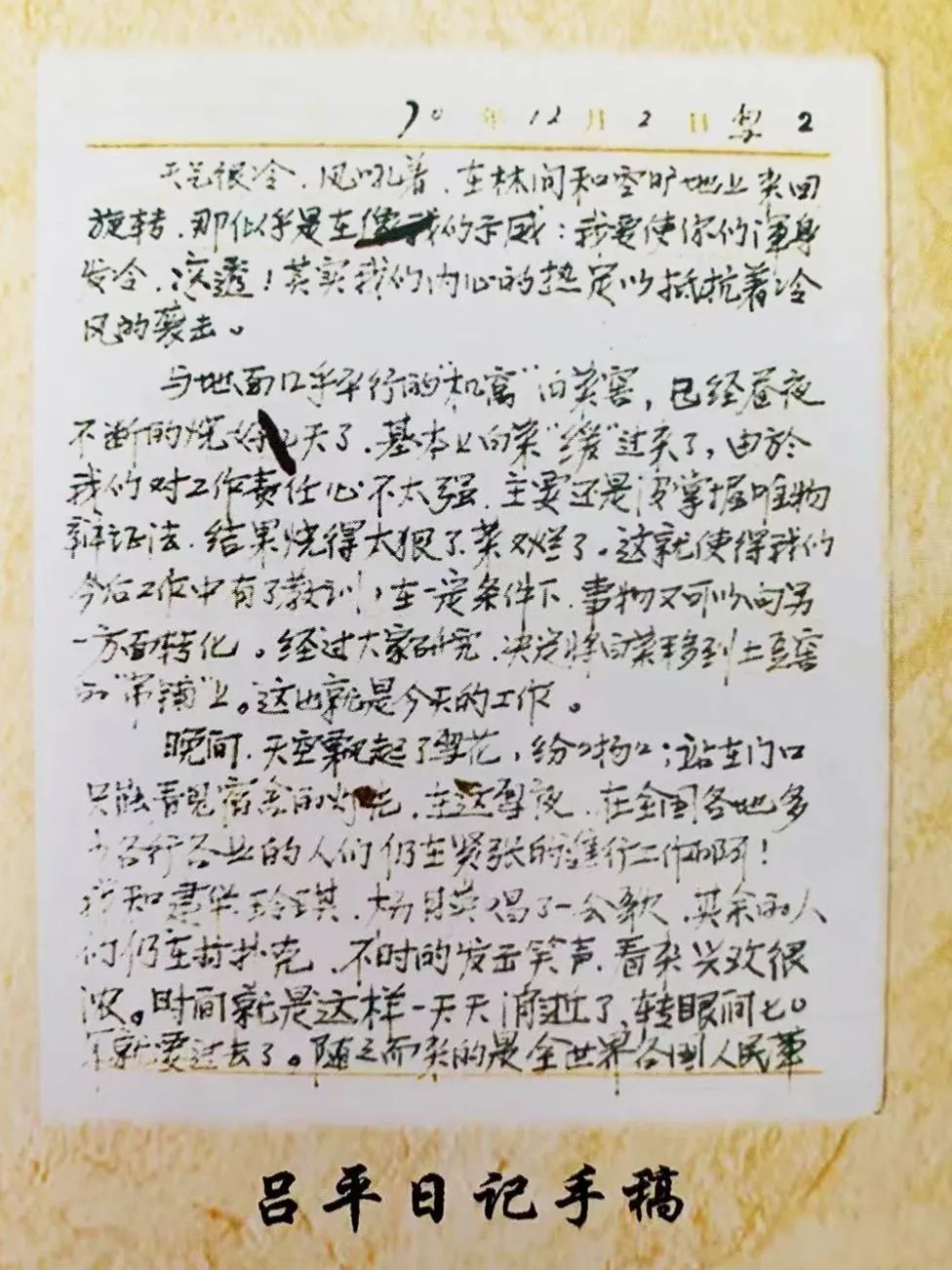新年到了,自己又长一岁,19岁啦!在政治上应当是成熟的,但自己却仍很幼稚,多么跟不上形势发展啊!元旦社论传达了毛主席的最新指示,进行一次思想和政治路线方面的教育。对我们这些没有社会经验、阶级斗争知识贫乏的青年来说,尤其重要。在新的一年里我们将纪念巴黎公社100周年、中国共产党成立50周年,还将迎接四届人大的召开。今年是我国第四个五年计划的第一年,是我们兵团第一个三年计划的第一年,我要不断提高思想革命化、革命科学化的程度。生命不息,革命不停,战斗不止。