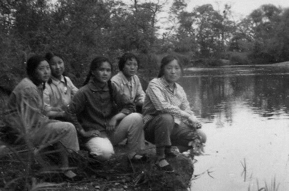 左起伍瑞珏,伊范,程京青,田杰,徐媛,下乡在南北河畔都是哈三中66届高中毕业的,都下乡到了黑龙江省北安长水河农场