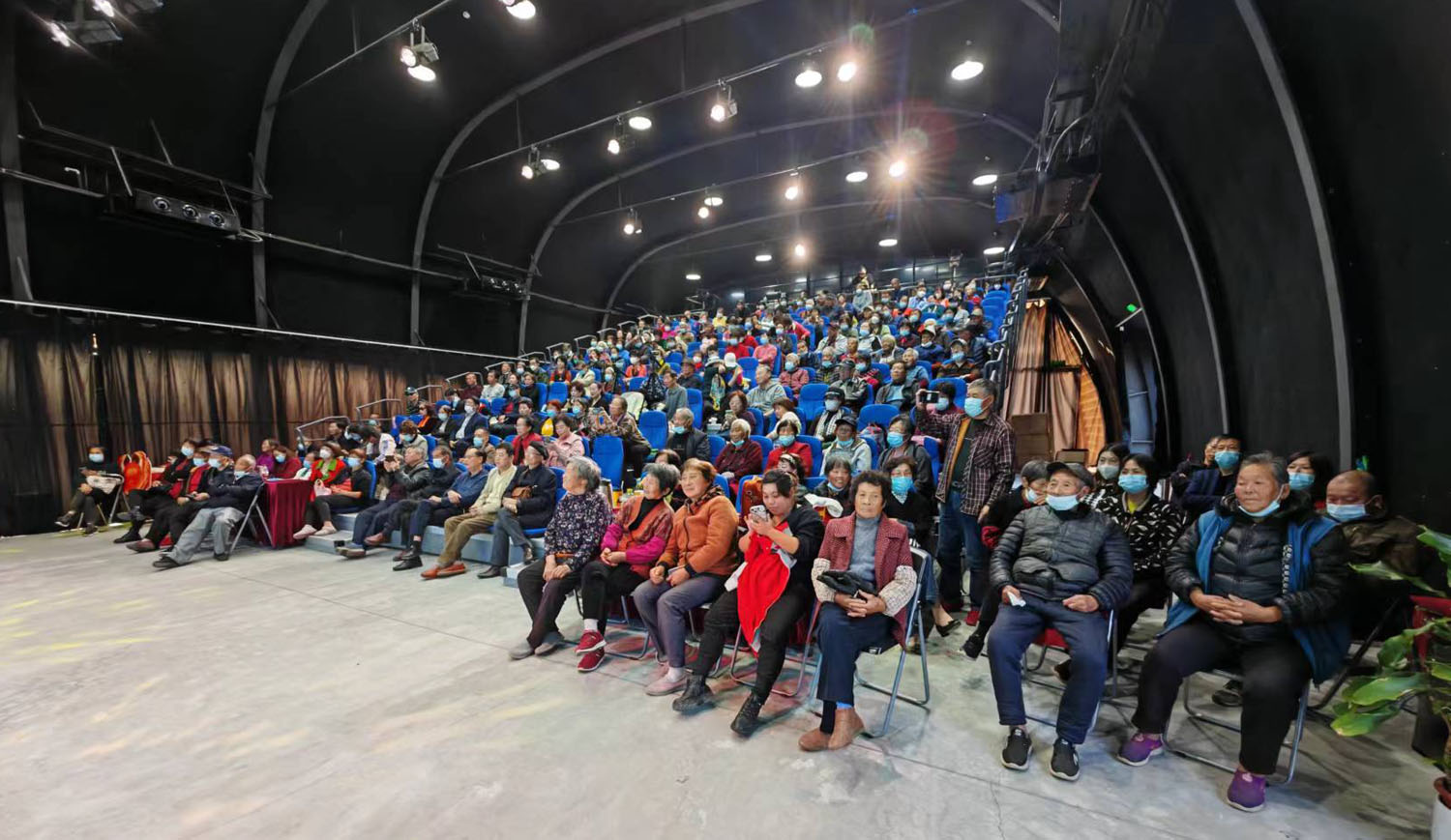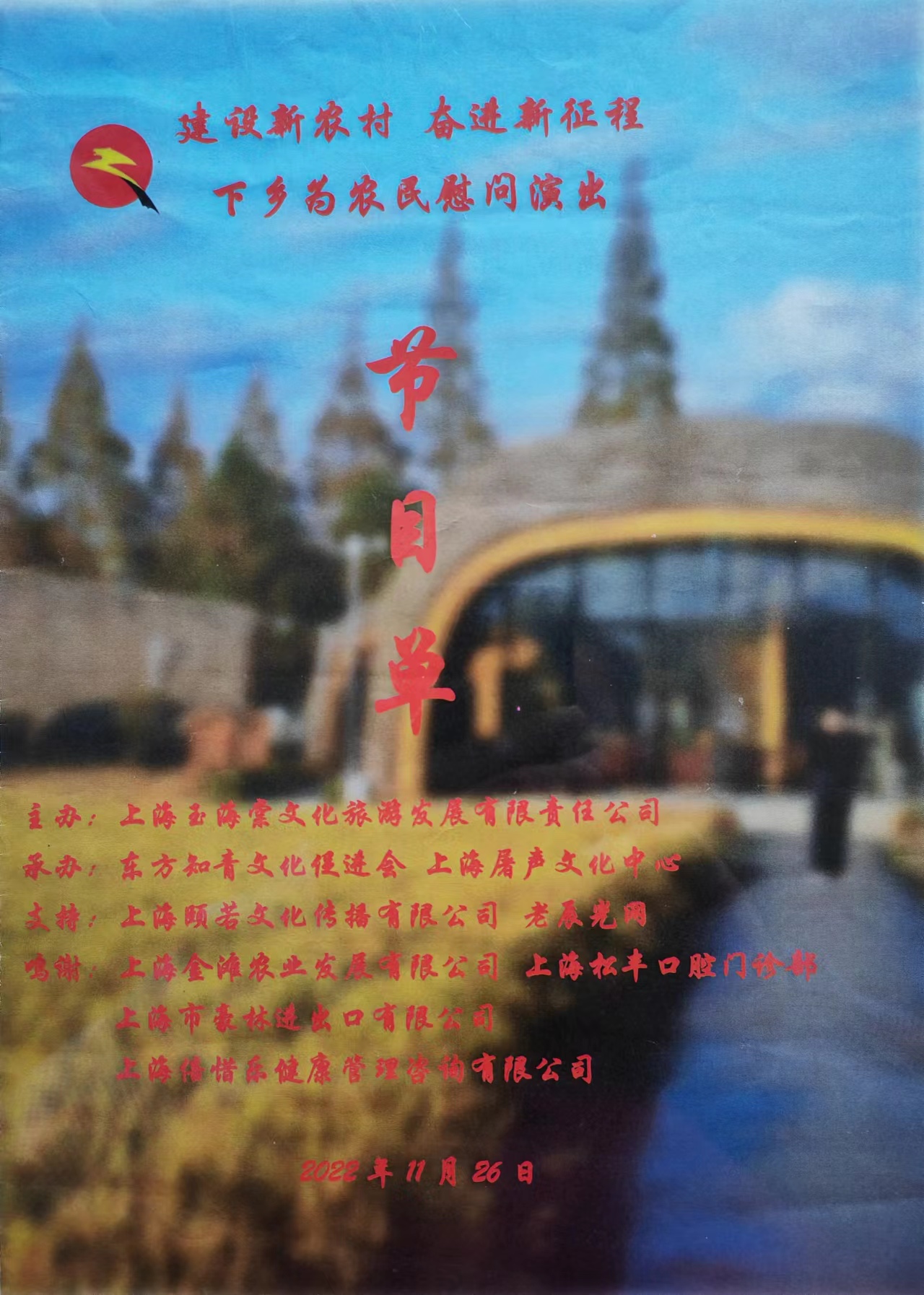 老辰光网讯(宋爱国报道) 初冬的崇明,阳光明媚。东方知青文化促进会继今年下半年三次下乡为农民演出之后,11月26日再次赴崇明为农民作“建设新农村 奋进新征程”的慰问演出。当年曾有22万名上海知青下乡到崇明为祖国的农村建设奉献了青春和力量,崇明的父老乡亲对知青深有感情。演出活动由上海玉海棠文化旅游发展有限责任公司主办,东方知青文化促进会、上海屠声文化中心承办,上海颐若文化传播有限公司、老辰光网给予了支持。演出活动由上海颐若文化传播有限公司董事长赵大砥为总监制,东方知青文化促进会会长张国弟为总策划,李培康为总导演。演出在崇明三星镇玉海棠稻田驿站演播厅举行,附近的村民闻讯后,午后就陆续前来,有带孩子的,有不少年纪大的柱着拐杖,甚至有的坐轮椅前来。下午二时演出开始,主持人的主持词表达了活动的主旨: