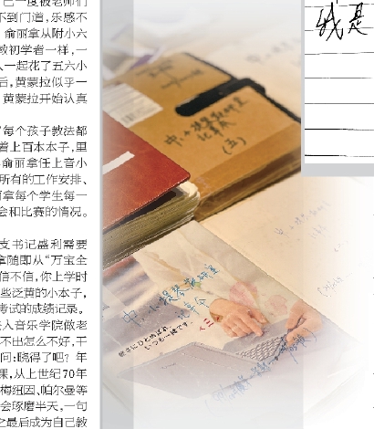 据说有一次,上音管弦系党总支书记盛利需要2020级一位学生的比赛资料,俞丽拿随即从“万宝全书”里找出给她。俞丽拿问盛利:“你信不信,你上学时每次考试记录我都能找到?”翻开了那些泛黄的小本子,不多时,果真找到了盛利1995年入学考试的成绩记录。