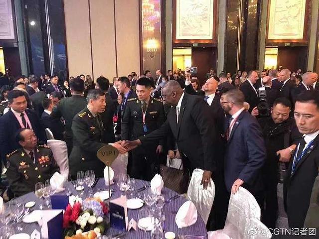 原标题:美防长跨越两个座位主动与中国防长握手,外界紧盯中美防长“香会”互动