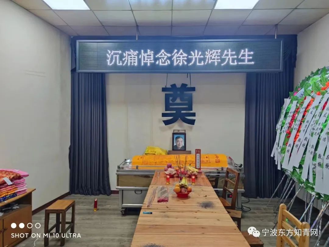 2023年5月30日,已经终止亲人探视的李惠利医院,电话通知“小芳”,徐光辉的心、肾、血都全面衰退,药物已无法维持他的生命,在急诊室边上的隔离病房中,细菌已经感染了他的心、肾等器管,医院给家属两个选择:死在医院进太平间,乘还有一口气接回家。于是,一条龙服务,汽车送到宁波段塘老年公寓,车到大堂门口,徐光辉吐出了最后一口气。在那里设灵堂三天,6月1日大殓火化,骨灰寄存,届时,由夫人“小芳”亲自送到黑龙江省桦南县桦木岗大队落土,徐光辉魂归黑土地。