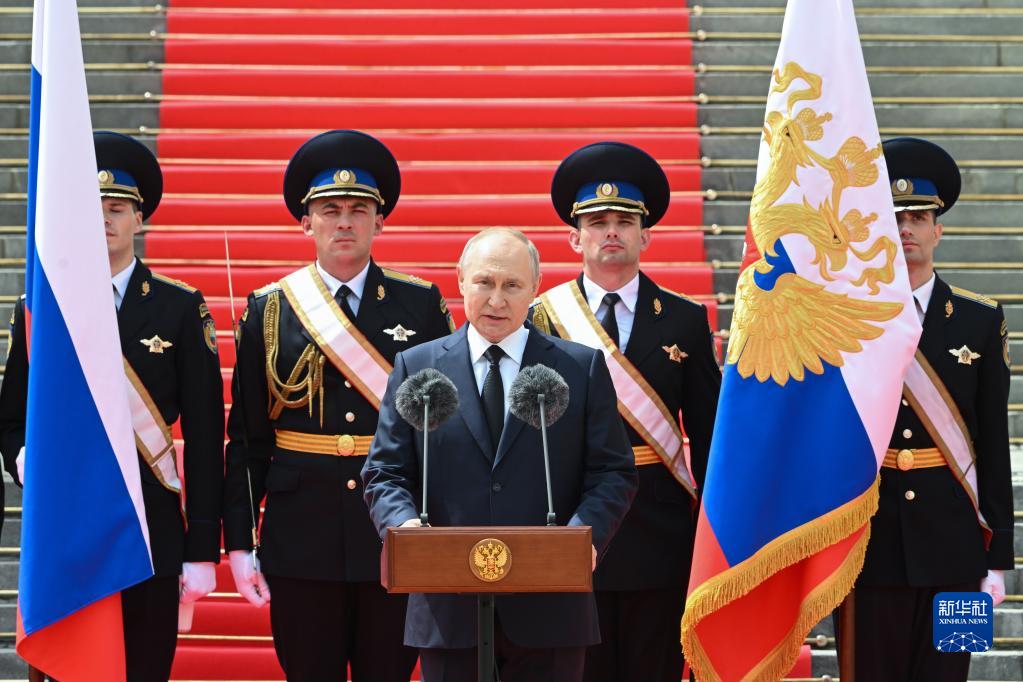 6月27日,俄罗斯总统普京在首都莫斯科会见俄国防部、联邦安全局、国民近卫军和内务部等部门代表时发表讲话。新华社/塔斯社