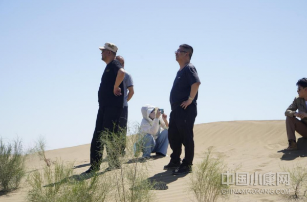 烈日炎炎之下,主创团队一行还前往位于一四九团辖区的古尔班通古特沙漠边缘地区,看到了为了改善团场生态环境,几代人不懈努力地种植的防风固沙植物带,为团场万亩良田筑起了坚固的绿色生态屏障。站在沙丘之巅,远眺无尽的戈壁,遥想当年那一代勤劳勇敢的军垦人,不畏艰辛困苦,把荒漠改造成如今一片片的绿洲,一行人不得不为之叹服和缅怀.