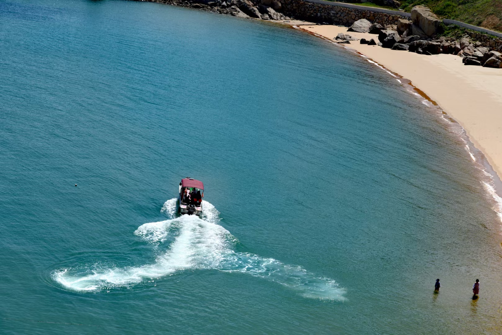 今天是我们到平潭太阳最给力的一天,北部湾晴空万里,北部湾的路是沿海公路,依山傍水十分养眼;北部湾的沙滩的白沙十分细密,行走在上面也十分费劲;北部湾的海水格外湛蓝,海面是十分干净,船行期间十分惬意。
